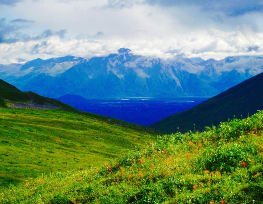 Hatcher Pass Management Area was stunning, filled with rugged snow-capped mountains, colorful wild flowers and abundant wildlife. As we progressed higher and higher toward the top of Hatcher Pass along Palmer-Fishhook Road, the road became steeper and narrower. But as I said, we wanted to see the heart and soul of Alaska.