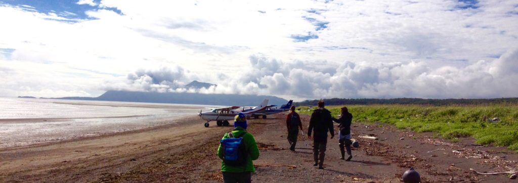 The tiny plane barely cleared towering mountains and volcanoes and then dove steeply to land on what initially seemed like a deserted beach. We soon found out it was far from deserted – it actually had four species of inhabitants in large numbers: brown bear, eagles, salmon and wolves.